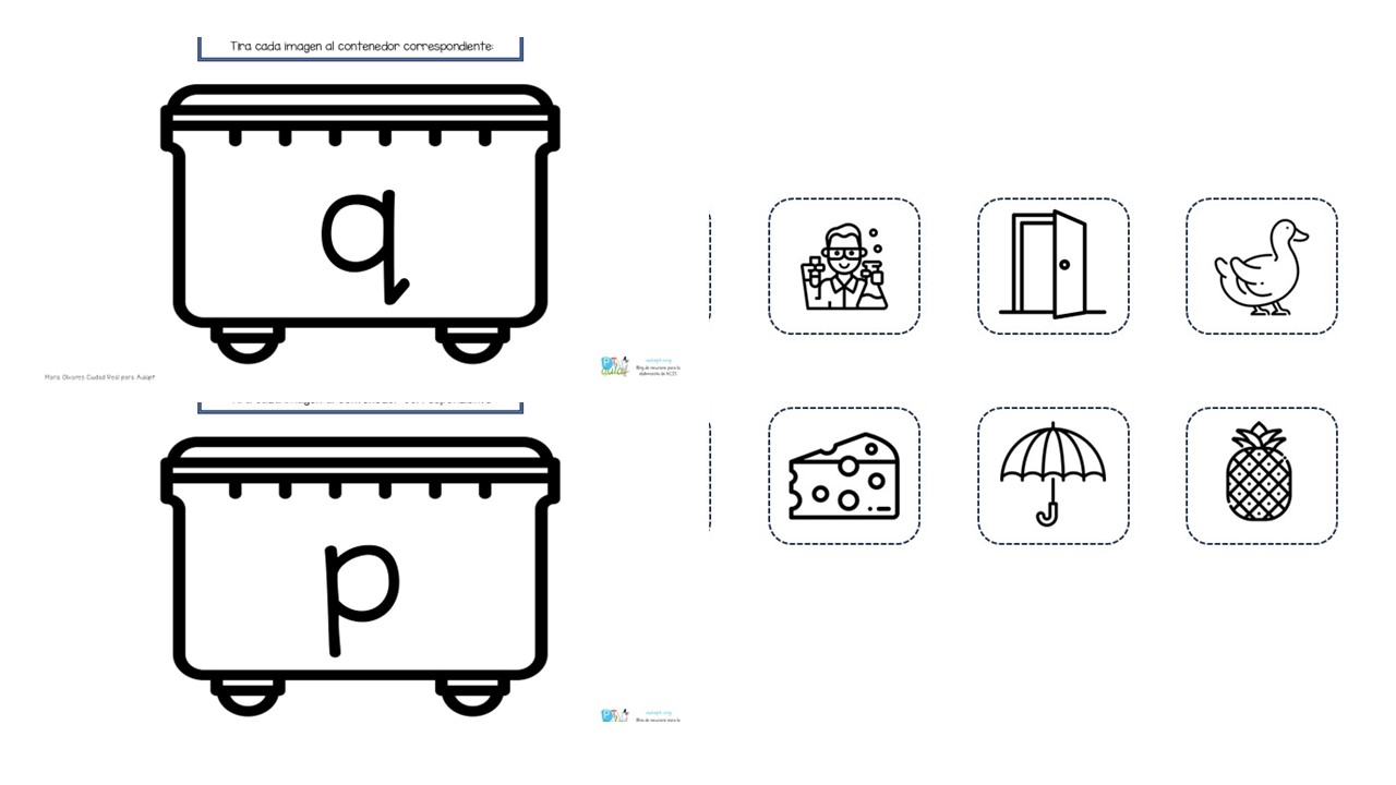 La siguiente tarea está pensada para trabajar la conciencia fonológica, pero además ampliamos el vocabulario y practicamos la conversión fonema – grafema. En ella hay que ordenar una serie de letras que aparecen desordenadas para formar palabras, para ello, cuenta con la ayuda de divertidos dibujos que facilitan la realización del ejercicio.